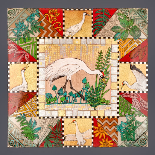 My quilt enamels often use a basic grid structure around a central theme as I build the enamel layers of color and pattern.